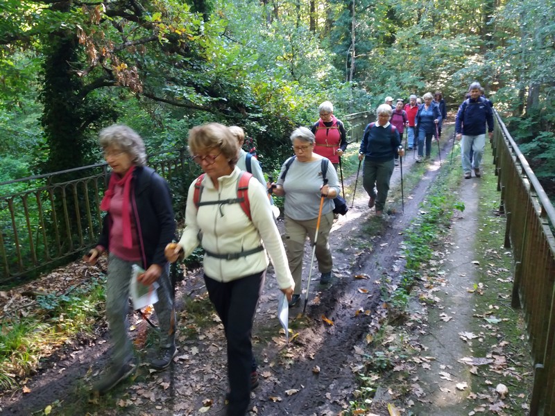 Le soleil et le ciel bleu ont accompagné les 28 marcheuses(eurs) de la grande marche ce matin tout au long d’une belle boucle de 9,5 km autour de Bullion. La fraîcheur matinale de ce début d’automne a rapidement laissé place à des températures bien agréables et presque chaudes sous les rayons du soleil. Beaucoup de châtaignes se sont déjà déposées sur les sols bien confortables des sous bois, mais les arbres ont gardé pour le moment leurs beaux habits verts et feuillus. Une marche bien agréable et conviviale. Dominique.