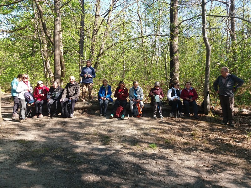 La petite marche a effectué une boucle de 8,9 km boisée, à l’abri de la petite bise matinale présente pour tempérer les doux rayons du soleil, et champêtre avec des paysages semblables à des peintures impressionnistes, grâce aux étendues de colzas jaunes, des jeunes pousses de céréales aux nuances de verts variés, et non loin de notre retour, de très belles grappes de glycines parme qui tentaient de grimper aux arbres, et au milieu desquelles du lilas apportait des touches blanches.